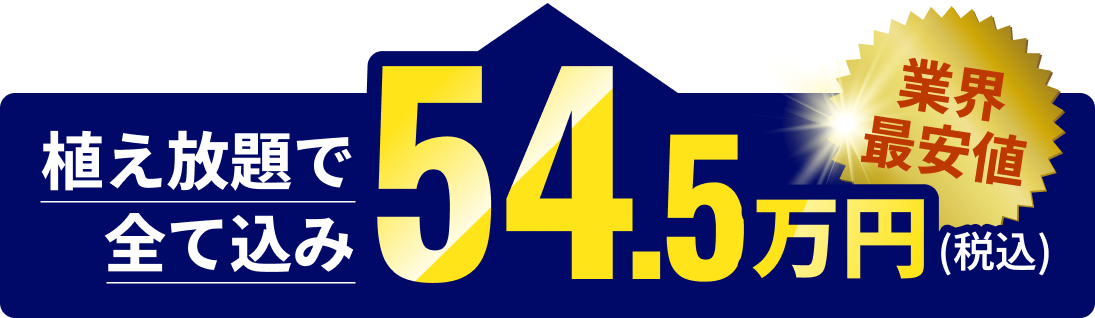 当社は、予算の都合で理想を諦めて欲しくないとの思いから、54.5万円の「植え放題システム」を確立いたしました。